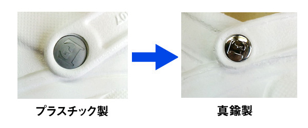 10月以降プラスチック製のボタン金具に変更する事になりました。